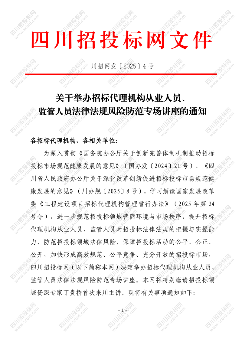 川招伴您二十载,续写招采新篇章——招标代理(工程项目管理)机构专场讲座将于12月举办