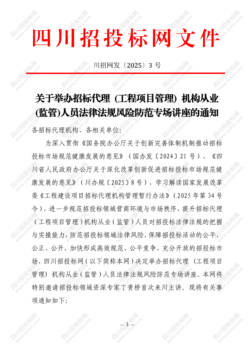 川招伴您二十载,续写招采新篇章——招标代理(工程项目管理)机构专场讲座将于12月举办